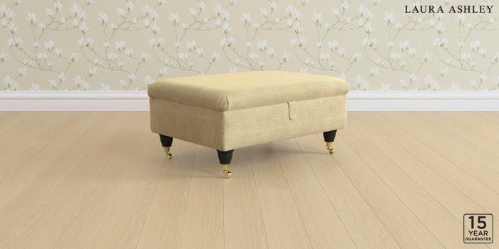 6.12.1 Buy Beverley by Laura Ashley Storage Footstool Edwin Chenille Truffle Natural Low Brass Castor - Black from the Laura Ashley online shop Click here to use our website with more accessibility support, for example screen readers