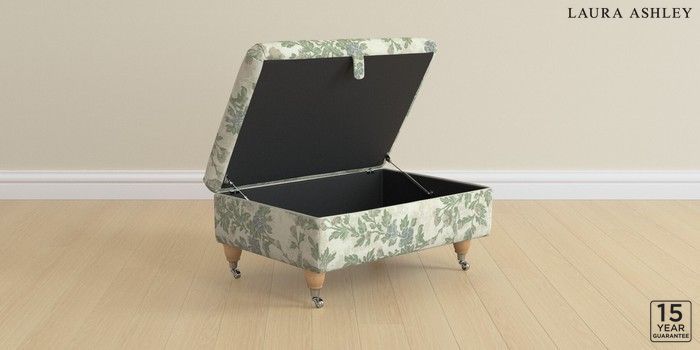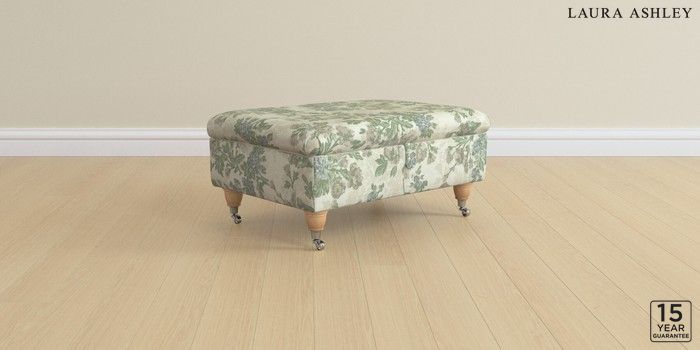 6.12.1 Buy Beverley by Laura Ashley Storage Footstool Ellerby Seaspray Blue Low Chrome Castor - Light Oak from the Laura Ashley online shop Click here to use our website with more accessibility support, for example screen readers