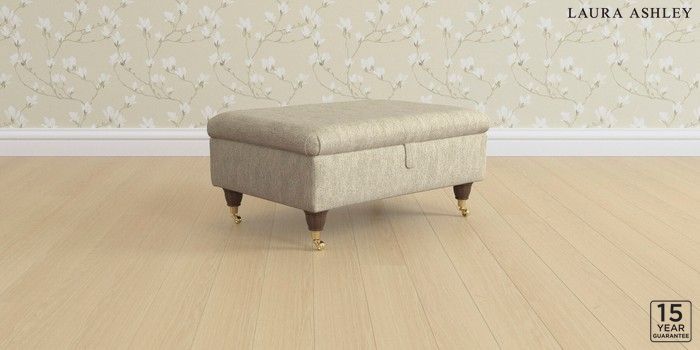 6.12.13 Buy Beverley by Laura Ashley Storage Footstool Harley Natural Low Brass Castor - Chestnut from the Laura Ashley online shop Click here to use our website with more accessibility support, for example screen readers