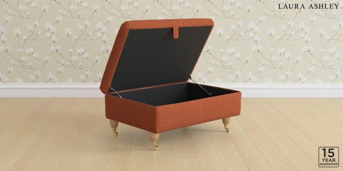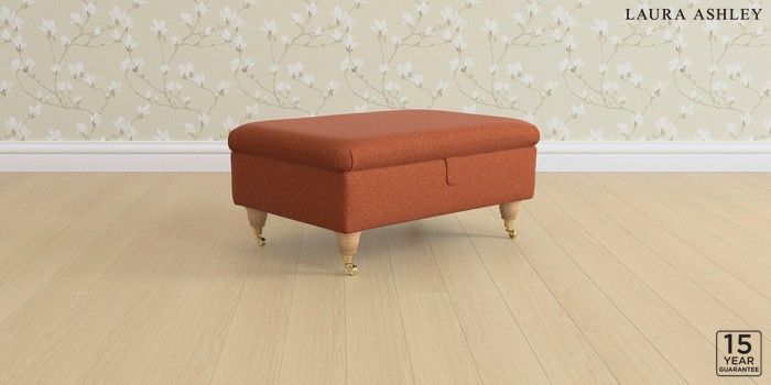 6.12.1 Buy Beverley by Laura Ashley Storage Footstool Harley Terracotta Orange Low Brass Castor - Light Oak from the Laura Ashley online shop Click here to use our website with more accessibility support, for example screen readers