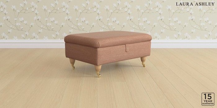 6.12.1 Buy Beverley by Laura Ashley Storage Footstool Kinsham Rust Orange Low Brass Castor - Light Oak from the Laura Ashley online shop Click here to use our website with more accessibility support, for example screen readers