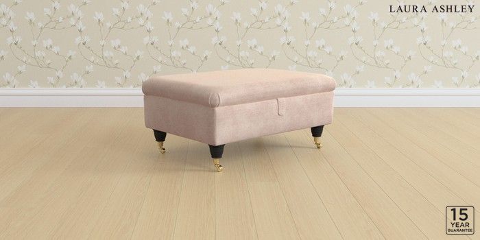 6.12.1 Buy Beverley by Laura Ashley Storage Footstool Orla Chalk Pink Low Brass Castor - Black from the Laura Ashley online shop Click here to use our website with more accessibility support, for example screen readers