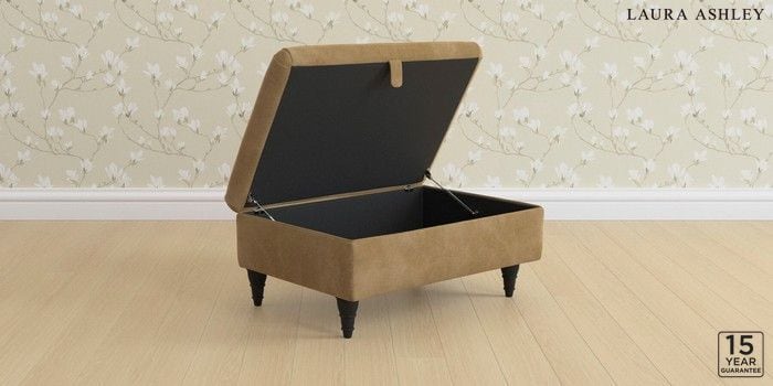 6.12.13 Buy Beverley by Laura Ashley Storage Footstool Orla Gold Natural Low Turned - Black from the Laura Ashley online shop Click here to use our website with more accessibility support, for example screen readers