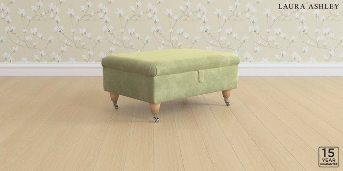 6.12.1 Buy Beverley by Laura Ashley Storage Footstool Orla Pale Hedgerow Green Low Chrome Castor - Light Oak from the Laura Ashley online shop Click here to use our website with more accessibility support, for example screen readers