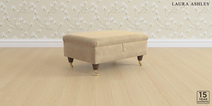 6.12.1 Buy Beverley by Laura Ashley Storage Footstool Peyton Sable Natural Low Brass Castor - Chestnut from the Laura Ashley online shop Click here to use our website with more accessibility support, for example screen readers