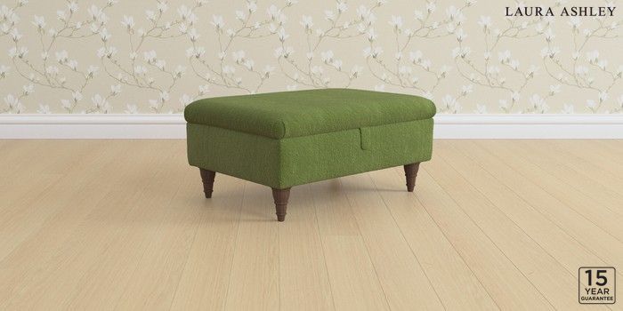 6.12.1 Buy Beverley by Laura Ashley Storage Footstool Tichwell Olive Green Low Turned - Chestnut from the Laura Ashley online shop Click here to use our website with more accessibility support, for example screen readers