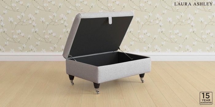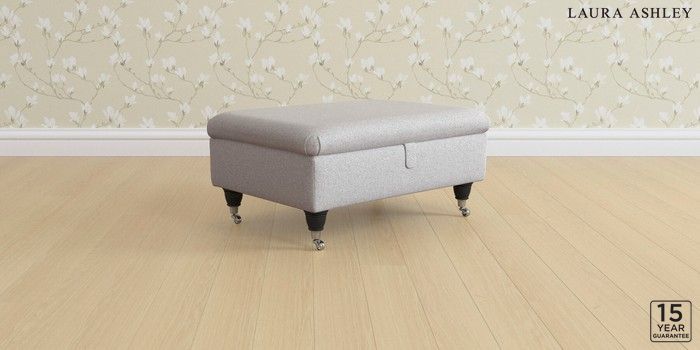 6.12.13 Buy Beverley by Laura Ashley Storage Footstool Wooton Pale Steel Grey Low Chrome Castor - Black from the Laura Ashley online shop Click here to use our website with more accessibility support, for example screen readers