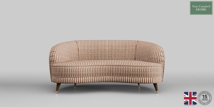 Bramerton by Nina Campbell is an elegant curved shaped sofa, perfect for interior enthusiasts. Designed with a serpentine sprung seat and superloop sprung back to provide excellent support and longevity, the multi layered foam fixed seat and back construction wraps for supreme comfort. With a matching footstool that seamlessly nestles into the curve of the sofa to create a chaise when desired. The tapered show wood legs with brass slipper cups add detail and sophistication for the finishing touches.