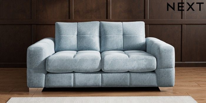 7.2.6 Buy Brooke Deep Sit 3 Seater Small Sofa Plush Chenille Light Blue Large Square Angle - Chrome Metal from the Laura Ashley online shop Click here to use our website with more accessibility support, for example screen readers
