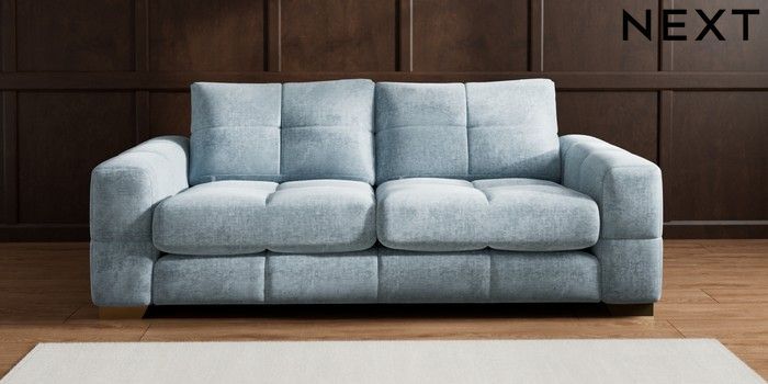 7.2.6 Buy Brooke Deep Sit 3 Seater Sofa Plush Chenille Light Blue Large Square Angle - Brushed Brass from the Laura Ashley online shop Click here to use our website with more accessibility support, for example screen readers