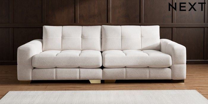 7.2.6 Buy Brooke Deep Sit 4 Seater Large Sofa Multi Weave Oyster Large Square Angle - Brushed Brass from the Laura Ashley online shop Click here to use our website with more accessibility support, for example screen readers