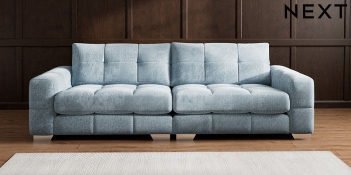 7.2.6 Buy Brooke Deep Sit 4 Seater Large Sofa Plush Chenille Light Blue Large Square Angle - Chrome Metal from the Laura Ashley online shop Click here to use our website with more accessibility support, for example screen readers