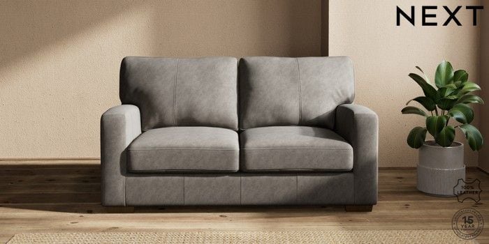 6.12.1 Buy Brooklyn Leather 2 Seater Sofa Antiqued Leather Grey Slim Block - Mid from the Laura Ashley online shop Click here to use our website with more accessibility support, for example screen readers