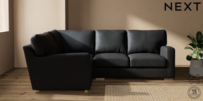 7.0.3 Buy Brooklyn Leather Small Corner Sofa - Left Hand Columbia Black Slim Block - Light from the Laura Ashley online shop Click here to use our website with more accessibility support, for example screen readers