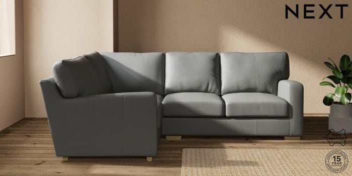 7.0.3 Buy Brooklyn Leather Small Corner Sofa - Left Hand Columbia French Grey Slim Block - Light from the Laura Ashley online shop Click here to use our website with more accessibility support, for example screen readers