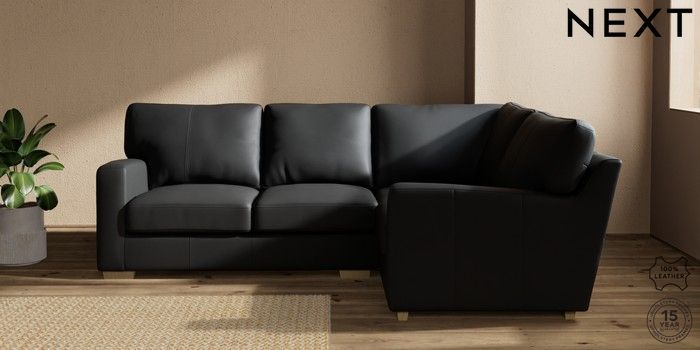 7.0.3 Buy Brooklyn Leather Small Corner Sofa - Right Hand Columbia Black Slim Block - Light from the Laura Ashley online shop Click here to use our website with more accessibility support, for example screen readers