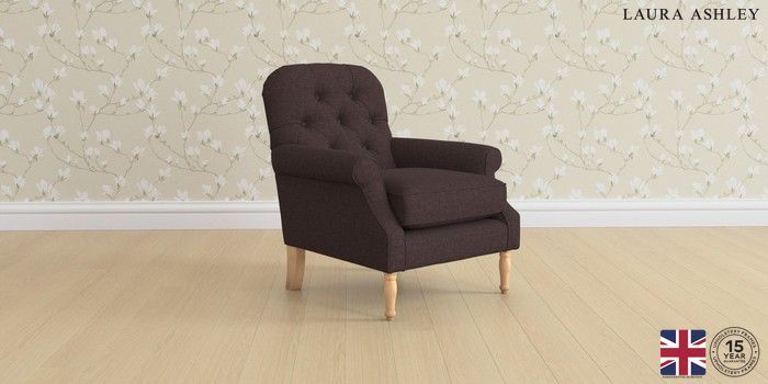 7.0.3 Buy Cambridge Button Back by Laura Ashley Armchair Bainton Chocolate Brown Medium Turned - Light Oak from the Laura Ashley online shop Click here to use our website with more accessibility support, for example screen readers