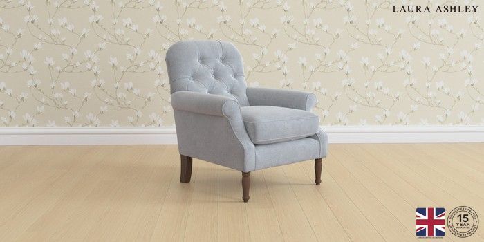 6.12.1 Buy Cambridge Button Back by Laura Ashley Armchair Peyton Powder Blue Medium Turned - Chestnut from the Laura Ashley online shop Click here to use our website with more accessibility support, for example screen readers