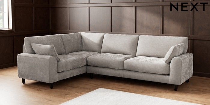 7.2.6 Buy Campbell Large Corner Sofa - Left Hand Distressed Velour French Grey High Leg - Dark from the Laura Ashley online shop Click here to use our website with more accessibility support, for example screen readers