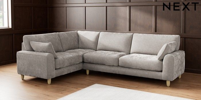 7.2.6 Buy Campbell Large Corner Sofa - Left Hand Distressed Velour French Grey High Leg - Light from the Laura Ashley online shop Click here to use our website with more accessibility support, for example screen readers