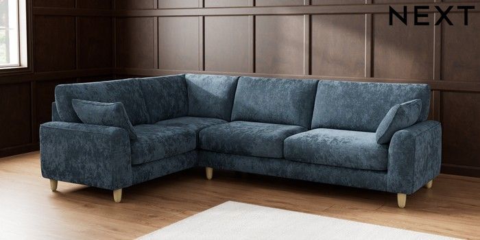 7.2.6 Buy Campbell Large Corner Sofa - Left Hand Distressed Velour Midnight Blue High Leg - Light from the Laura Ashley online shop Click here to use our website with more accessibility support, for example screen readers