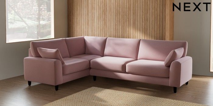 7.2.6 Buy Campbell Large Corner Sofa - Left Hand Natural Mix Light Rose Pink High Leg - Dark from the Laura Ashley online shop Click here to use our website with more accessibility support, for example screen readers