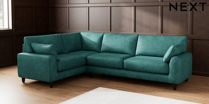7.2.6 Buy Campbell Large Corner Sofa - Left Hand Plush Chenille Dark Teal Green High Leg - Dark from the Laura Ashley online shop Click here to use our website with more accessibility support, for example screen readers