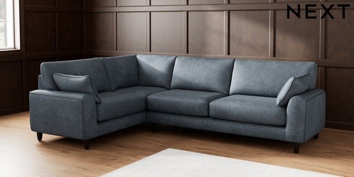 7.2.6 Buy Campbell Large Corner Sofa - Left Hand Plush Chenille Slate Blue High Leg - Dark from the Laura Ashley online shop Click here to use our website with more accessibility support, for example screen readers
