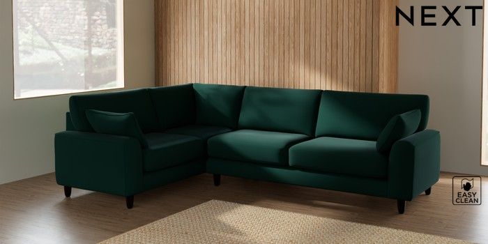 7.2.6 Buy Campbell Large Corner Sofa - Left Hand Plush Velvet Easy Clean Bottle Green High Leg - Dark from the Laura Ashley online shop Click here to use our website with more accessibility support, for example screen readers