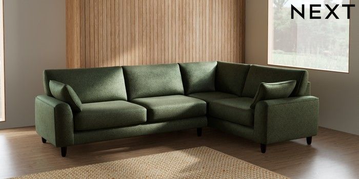 7.2.6 Buy Campbell Large Corner Sofa - Right Hand Boucle Chenille Dark Moss Green High Leg - Dark from the Laura Ashley online shop Click here to use our website with more accessibility support, for example screen readers