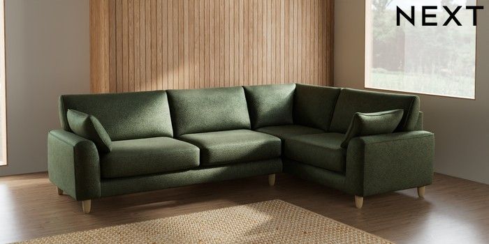 7.2.6 Buy Campbell Large Corner Sofa - Right Hand Boucle Chenille Dark Moss Green High Leg - Light from the Laura Ashley online shop Click here to use our website with more accessibility support, for example screen readers