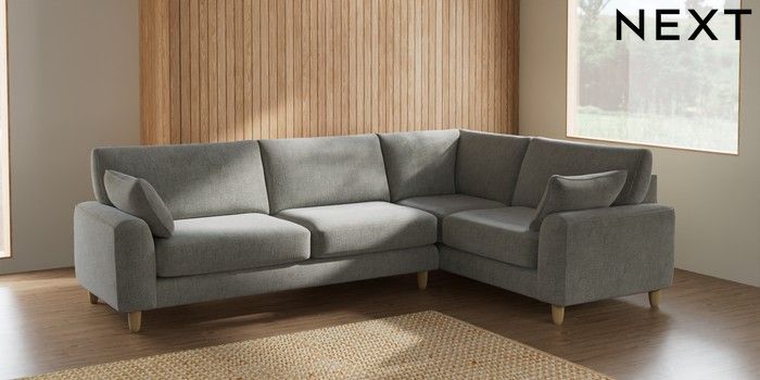 7.2.6 Buy Campbell Large Corner Sofa - Right Hand Chunky Chenille Light Grey High Leg - Light from the Laura Ashley online shop Click here to use our website with more accessibility support, for example screen readers