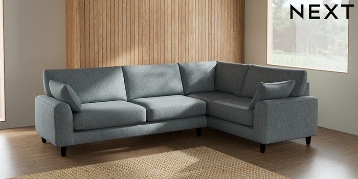 7.2.6 Buy Campbell Large Corner Sofa - Right Hand Chunky Weave Mid Blue High Leg - Dark from the Laura Ashley online shop Click here to use our website with more accessibility support, for example screen readers