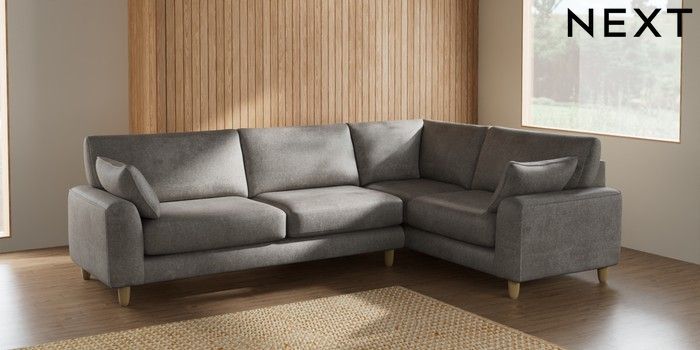 7.2.6 Buy Campbell Large Corner Sofa - Right Hand Plush Chenille Light Grey High Leg - Light from the Laura Ashley online shop Click here to use our website with more accessibility support, for example screen readers