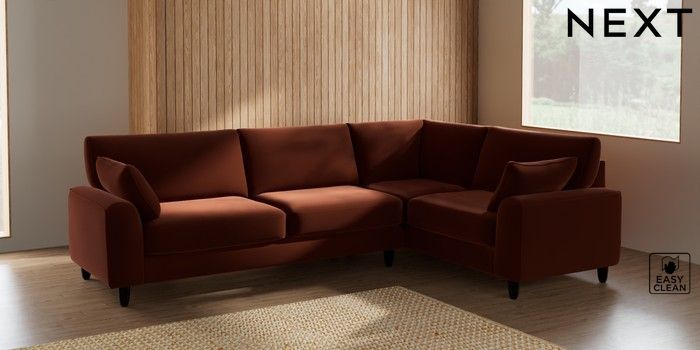 7.2.6 Buy Campbell Large Corner Sofa - Right Hand Plush Velvet Easy Clean Ginger Orange High Leg - Dark from the Laura Ashley online shop Click here to use our website with more accessibility support, for example screen readers