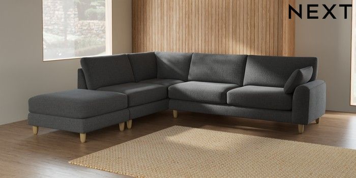 7.2.6 Buy Campbell Large Open End Corner Chaise - Left Hand Chunky Texture Dark Grey High Leg - Light from the Laura Ashley online shop Click here to use our website with more accessibility support, for example screen readers