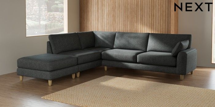 7.2.6 Buy Campbell Large Open End Corner Chaise - Left Hand Cotswold Chenille Dark Grey High Leg - Light from the Laura Ashley online shop Click here to use our website with more accessibility support, for example screen readers