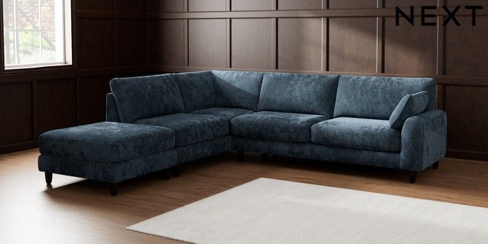 7.2.6 Buy Campbell Large Open End Corner Chaise - Left Hand Distressed Velour Midnight Blue High Leg - Dark from the Laura Ashley online shop Click here to use our website with more accessibility support, for example screen readers