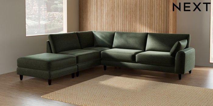 7.2.6 Buy Campbell Large Open End Corner Chaise - Left Hand Luxe Chenille Mid Green High Leg - Dark from the Laura Ashley online shop Click here to use our website with more accessibility support, for example screen readers