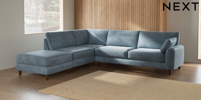 7.2.6 Buy Campbell Large Open End Corner Chaise - Left Hand Plush Chenille Light Blue High Leg - Mid from the Laura Ashley online shop Click here to use our website with more accessibility support, for example screen readers