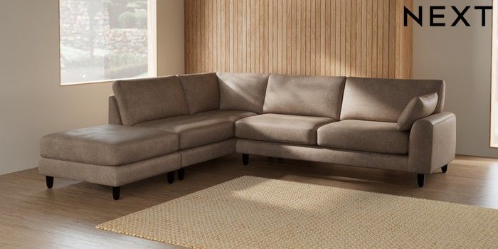 7.2.6 Buy Campbell Large Open End Corner Chaise - Left Hand Plush Chenille Mid Natural High Leg - Dark from the Laura Ashley online shop Click here to use our website with more accessibility support, for example screen readers