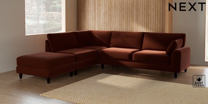 7.2.6 Buy Campbell Large Open End Corner Chaise - Left Hand Plush Velvet Easy Clean Ginger Orange High Leg - Dark from the Laura Ashley online shop Click here to use our website with more accessibility support, for example screen readers