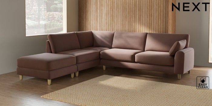 7.2.6 Buy Campbell Large Open End Corner Chaise - Left Hand Plush Velvet Easy Clean Mid Natural High Leg - Light from the Laura Ashley online shop Click here to use our website with more accessibility support, for example screen readers