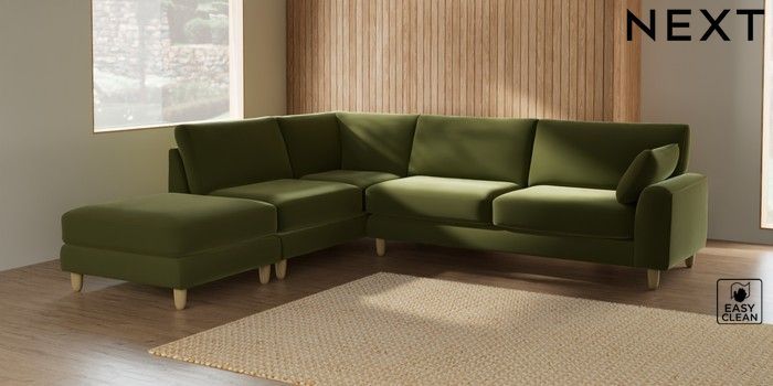 7.2.6 Buy Campbell Large Open End Corner Chaise - Left Hand Plush Velvet Easy Clean Mid Olive Green High Leg - Light from the Laura Ashley online shop Click here to use our website with more accessibility support, for example screen readers