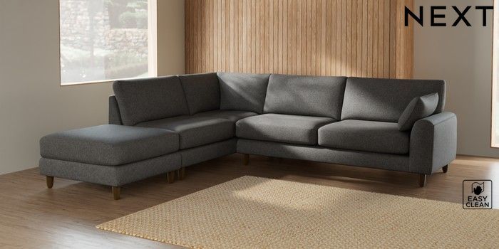 7.2.6 Buy Campbell Large Open End Corner Chaise - Left Hand Tweedy Blend Easy Clean Dark Grey High Leg - Mid from the Laura Ashley online shop Click here to use our website with more accessibility support, for example screen readers
