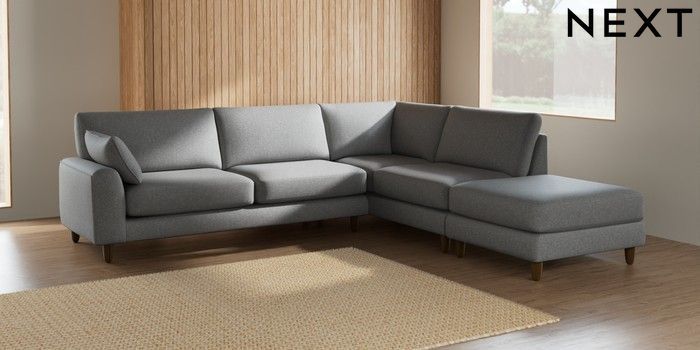 7.2.6 Buy Campbell Large Open End Corner Chaise - Right Hand Chunky Weave Mid Grey High Leg - Mid from the Laura Ashley online shop Click here to use our website with more accessibility support, for example screen readers
