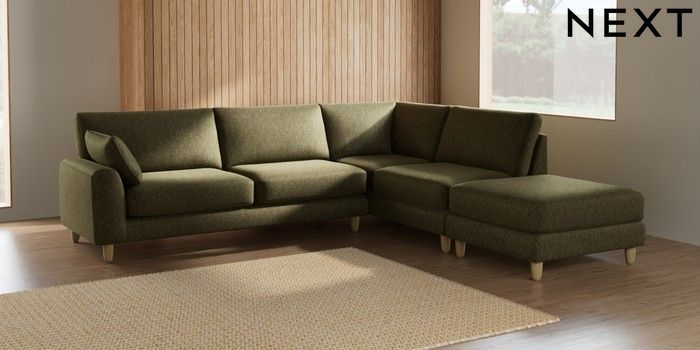 7.2.6 Buy Campbell Large Open End Corner Chaise - Right Hand Cotswold Chenille Dark Green High Leg - Light from the Laura Ashley online shop Click here to use our website with more accessibility support, for example screen readers