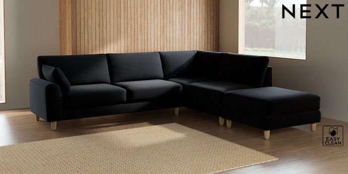 7.2.6 Buy Campbell Large Open End Corner Chaise - Right Hand Fine Chenille Easy Clean Black High Leg - Light from the Laura Ashley online shop Click here to use our website with more accessibility support, for example screen readers