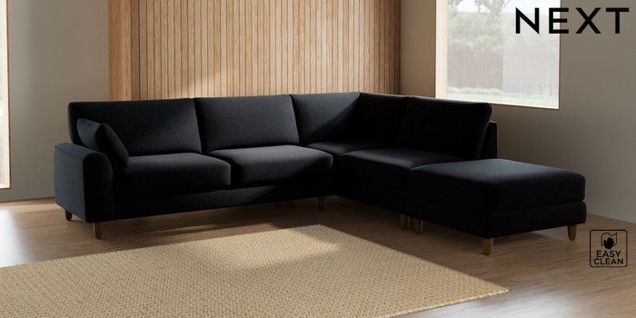 7.2.6 Buy Campbell Large Open End Corner Chaise - Right Hand Fine Chenille Easy Clean Black High Leg - Mid from the Laura Ashley online shop Click here to use our website with more accessibility support, for example screen readers