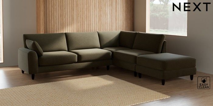 7.2.6 Buy Campbell Large Open End Corner Chaise - Right Hand Fine Chenille Easy Clean Dark Moss Green High Leg - Dark from the Laura Ashley online shop Click here to use our website with more accessibility support, for example screen readers